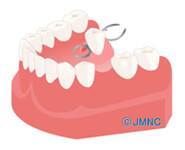 入れ歯と、残っている歯のそれぞれに磁石を取り付けます。固定されるため安定感があり、しっかりと物を噛むことができます。他の歯にひっかける金属のバネを使わないので、負担が少なく、見た目にも美しいです。着脱が簡単で、お手入れも楽々です。