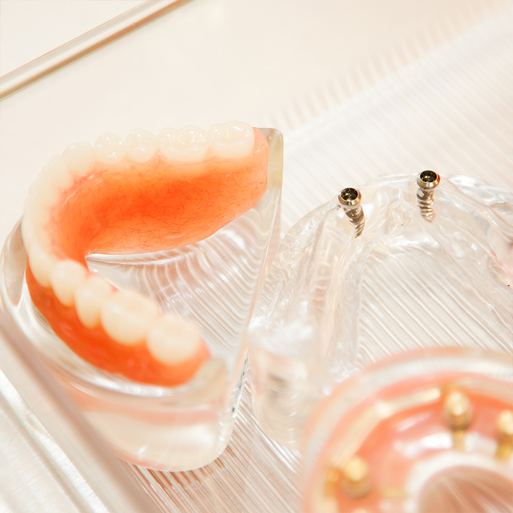 インプラント治療とは、歯の失われた部分の顎の骨に人工的な歯の根っこを埋め込み、その上にセラミックなどで作られた人工の歯を被せる治療方法です。