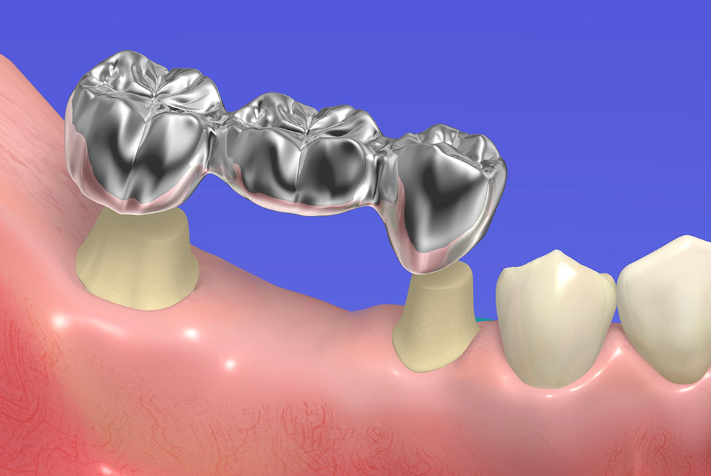 ブリッジとは、両隣の歯を削り、人工の歯をかぶせる治療法です。土台となる歯の健康度、噛む力などをしっかりと総合的に診断してから製作いたします。